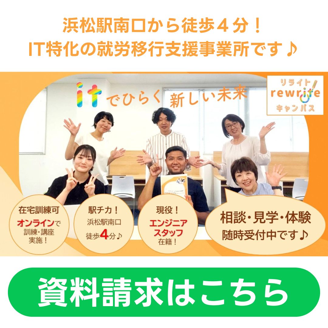 身体障害、知的障害、精神障害、発達障害、難病のある方など、様々な障害をお持ちの方にご利用いただいています。 障害の種類や程度に関わらず、IT分野での就労を目指す方をサポートしています。 まずはお気軽にご相談ください。